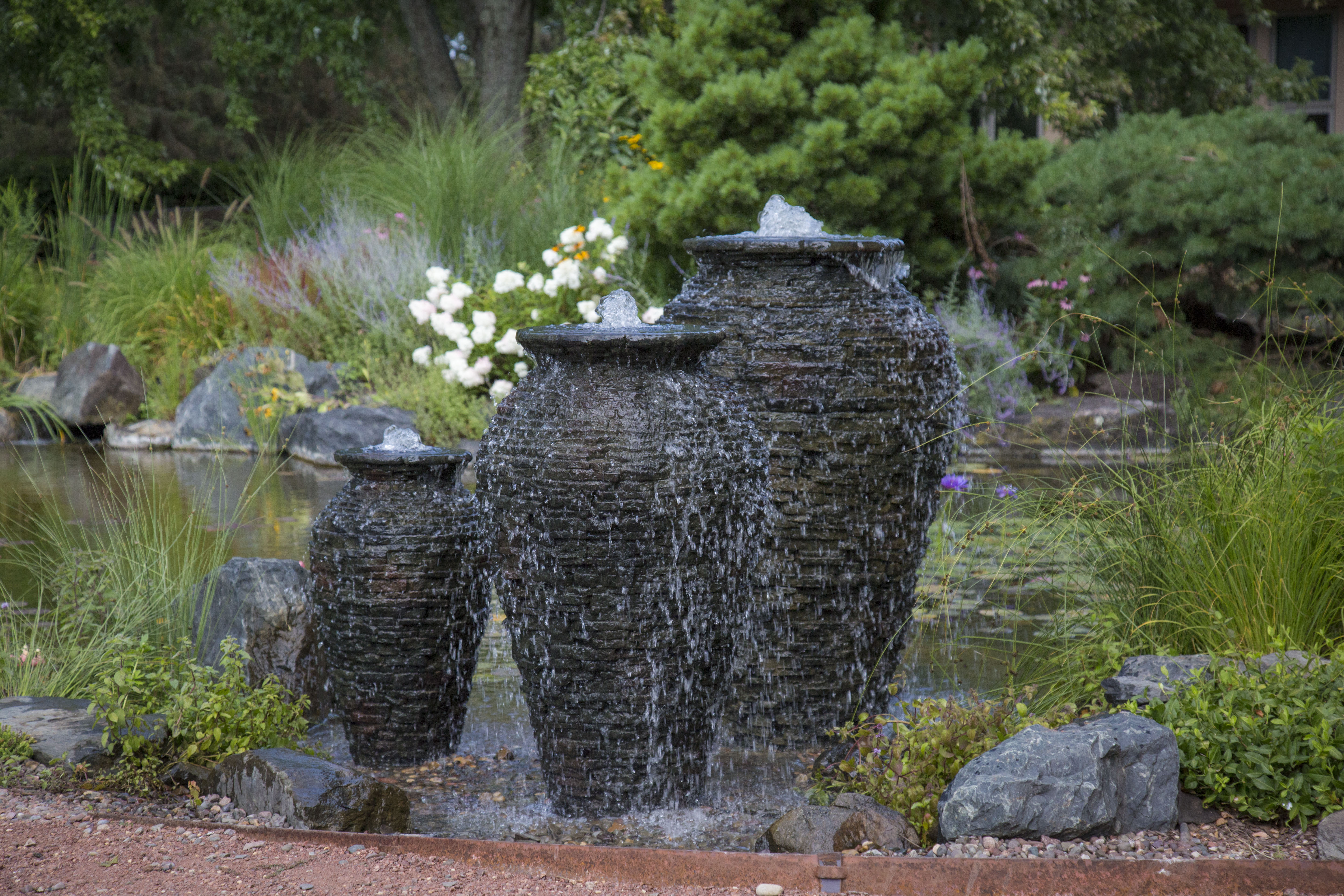 A Simpler Water Feature With a fountainscape, you get all the sights and sounds of a water feature with minimal upkeep. They naturally attract birds, create a calming ambiance, and are just as enjoyable to sit beside on a quiet evening as they are during the day.